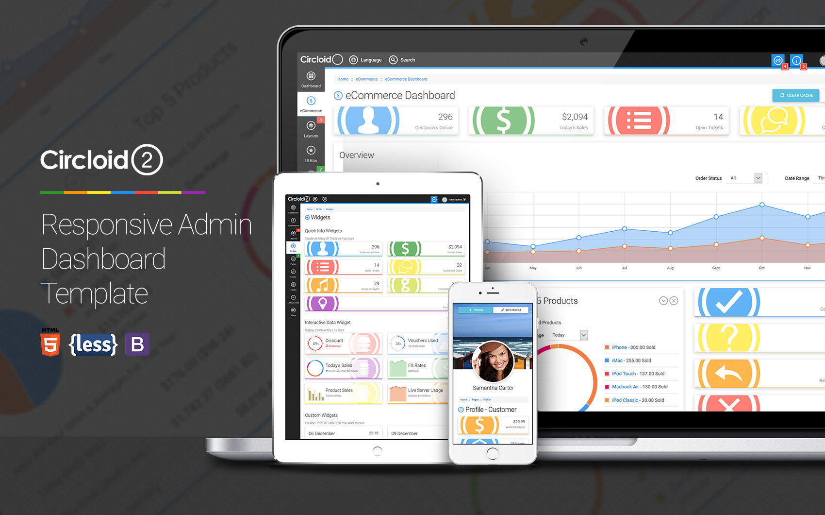 Панель управления шаблон для админ панели сайта - Circloid 2.0 - Responsive Dashboard Admin Template, идеально подойдет для сайтов в сфере Информационные технологии.