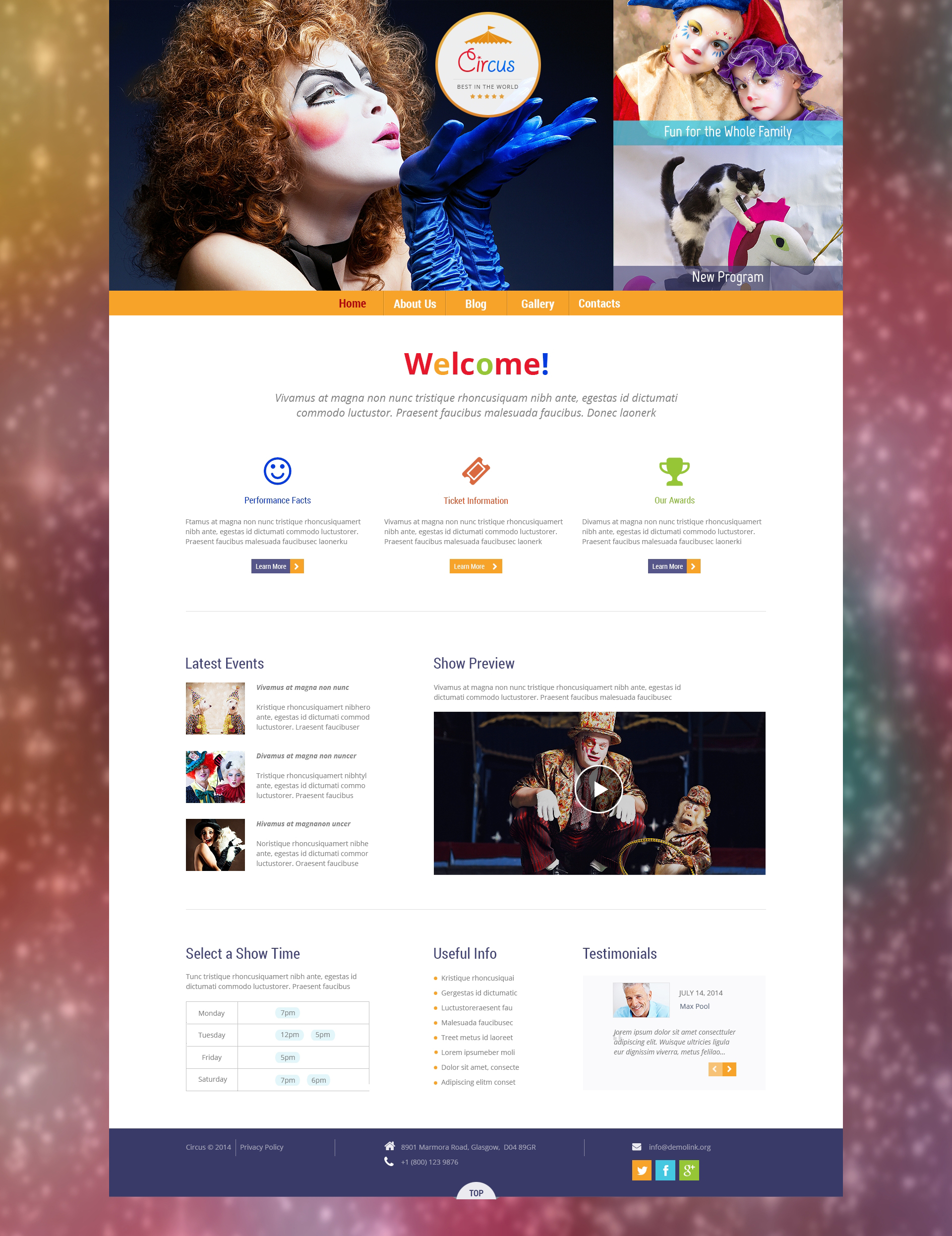 WordPress профессиональный шаблон - Entertainment - Circus Wonders WordPress Theme, превосходно подходит для сайтов в категории Развлечения.