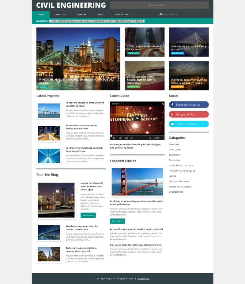 Civil Engineering - хорошо подходит для сайтов в области Гражданское строительство. WordPress шаблон для сайта - Civil Engineering WordPress Theme.