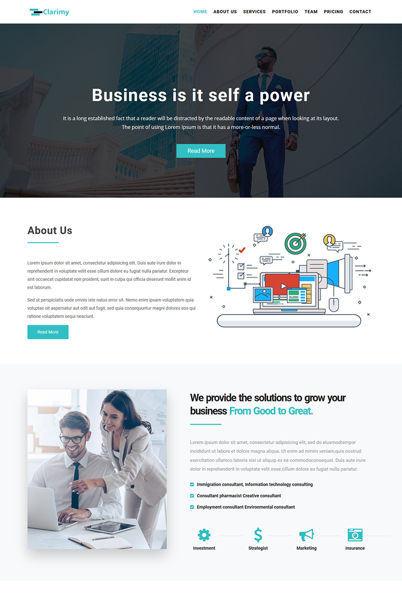 Clarimy - подойдет для сайтов в области Консалтинг. Лендинг шаблон посадочной страницы - Multipurpose Business Landing Template Landing Page Template.