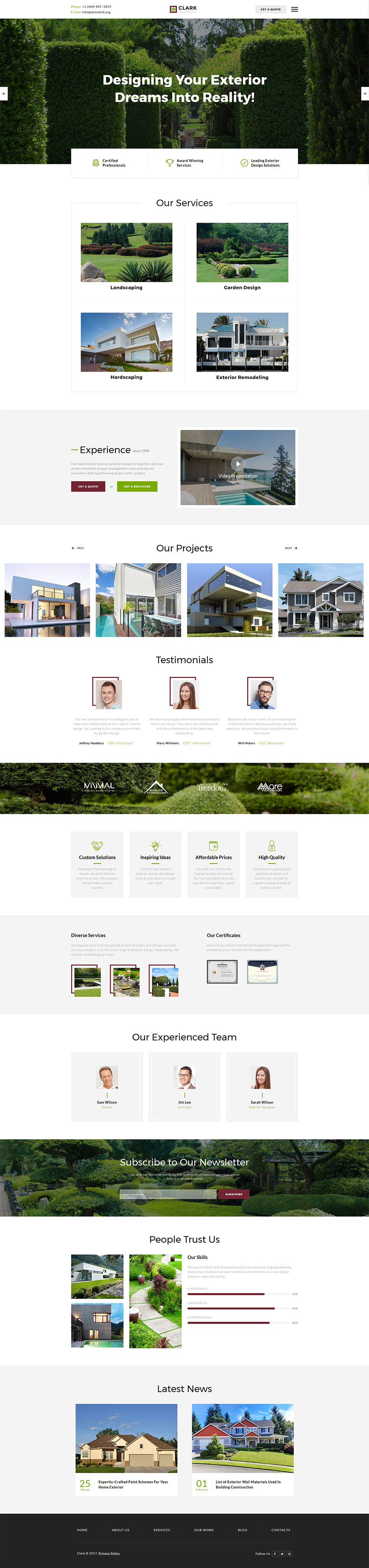 Landscape Design - отлично подойдет для сайтов в категории Ландшафтный дизайн. HTML5 продаваемый шаблон - Clark Exterior Design Responsive Website Template.