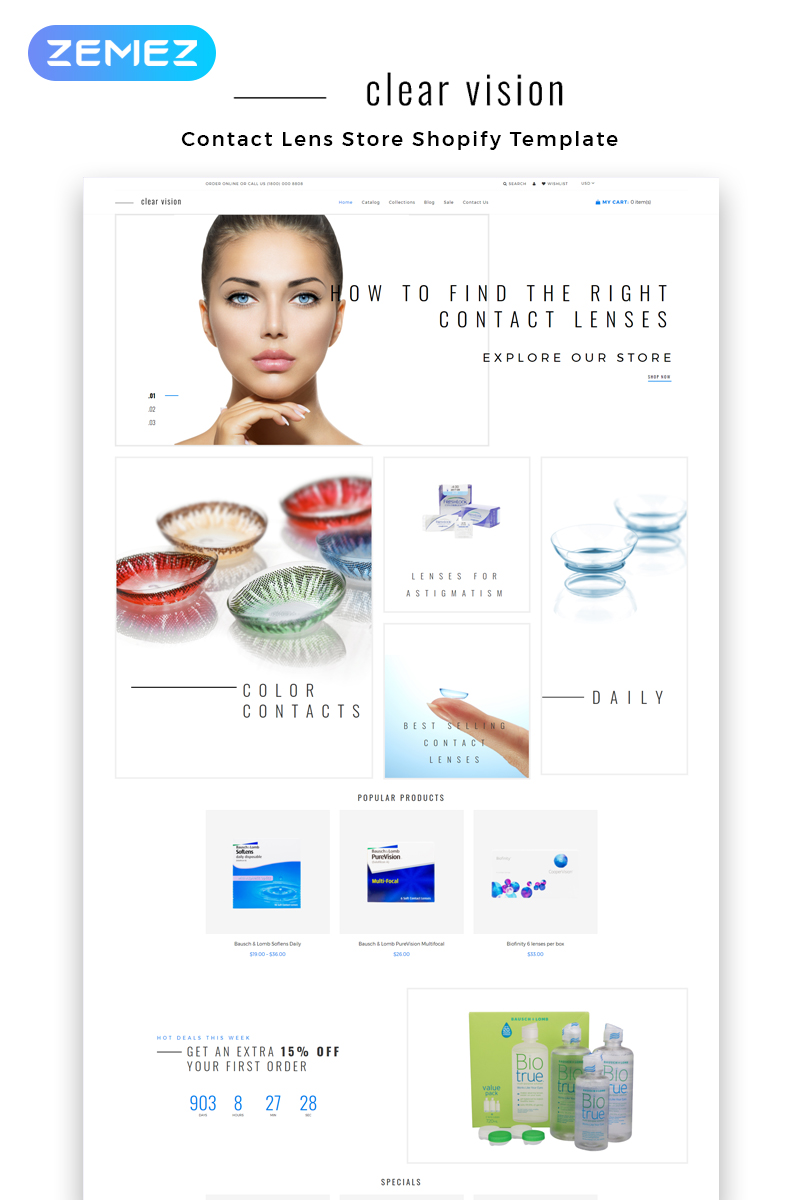 Clear Vision - отлично подойдет для сайтов на тему Окулист. Shopify шаблон интернет-магазина - Optometry Multipage Clean Shopify Theme.