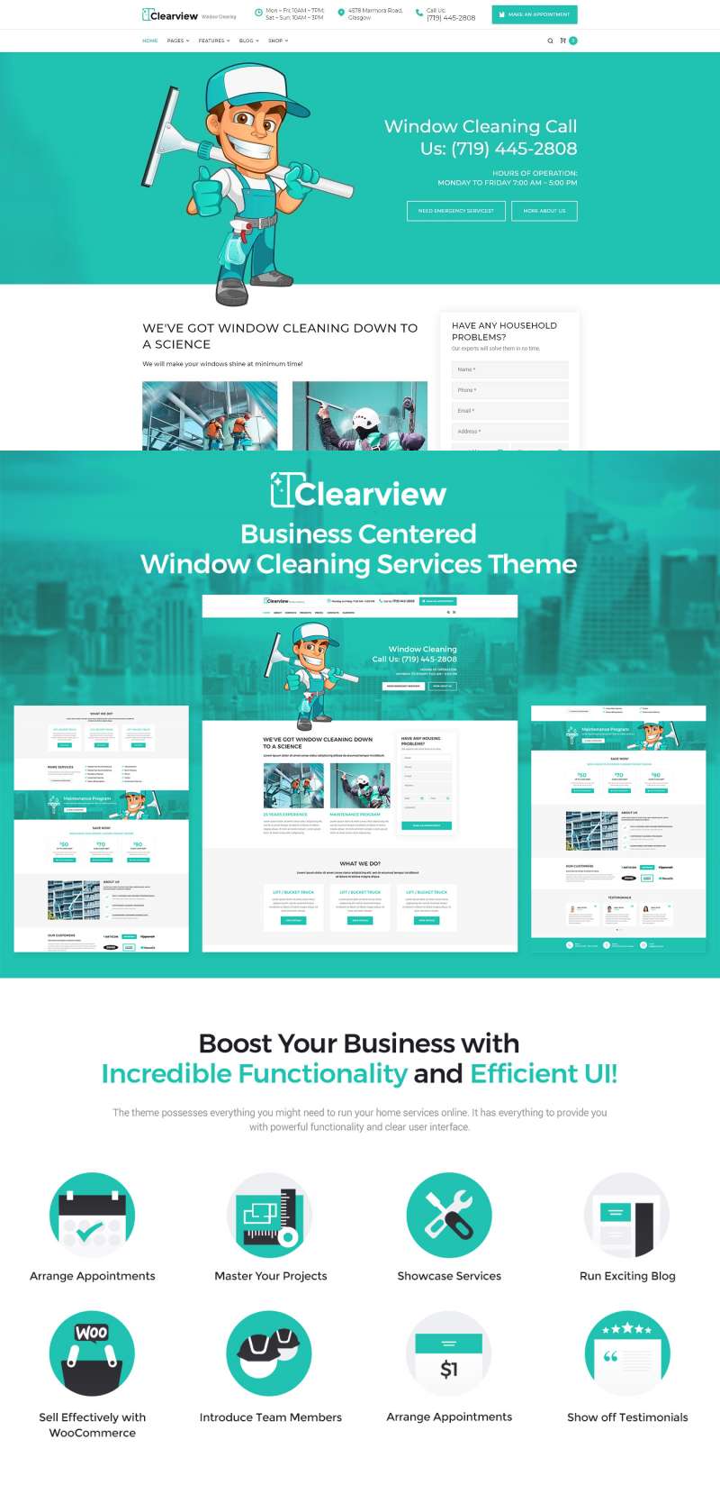 WordPress шаблон - Clearview - Window Cleaning Services WordPress theme, специально для сайтов в сфере Мойка окон.