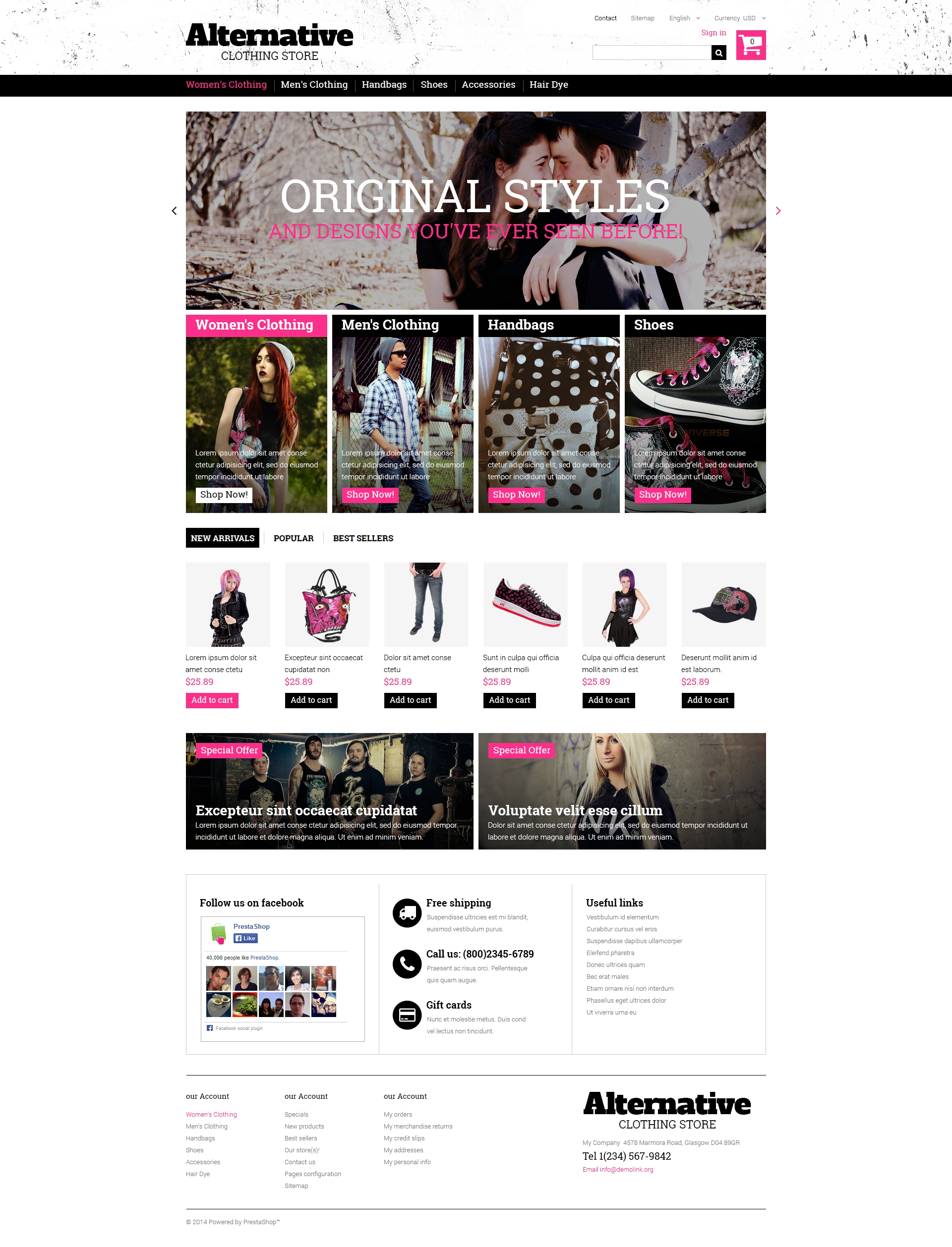 Скриншот - Одежда, которая рок prestashop тема - Apparel - PrestaShop интернет-магазин для сайта