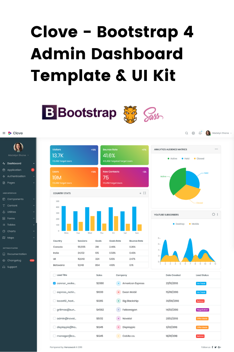Отзывчивый bootstrap 4 admin dashboard template admin template - Clove - Панель управления шаблон панели управления