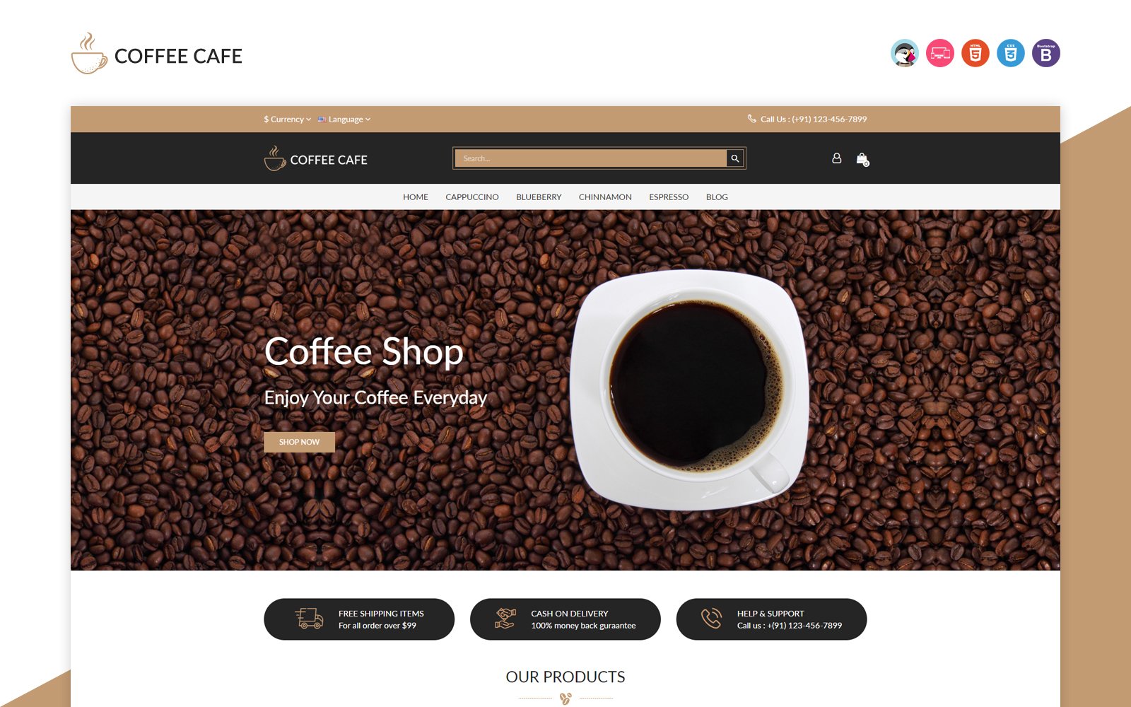 PrestaShop интернет-магазин для сайта - Coffee Shop - Coffee PrestaShop Theme, превосходно подходит для сайтов на тему Кофейня.