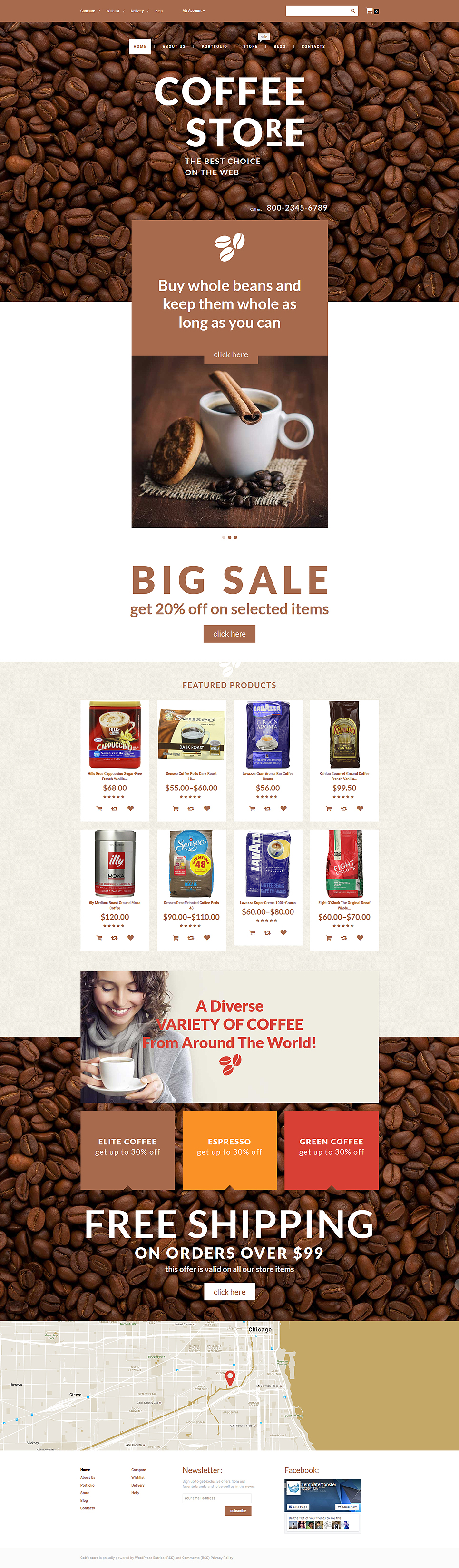 Скриншот - Тема кофейни woocommerce - Coffee Shop - WooCommerce шаблон онлайн-магазина Wordpress