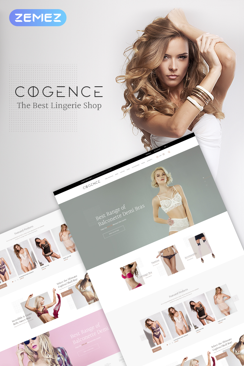 Cogence - подходит для сайтов в области Магазин белья. WooCommerce шаблон интернет-магазина Wordpress - Lingerie Shop WooCommerce Theme.