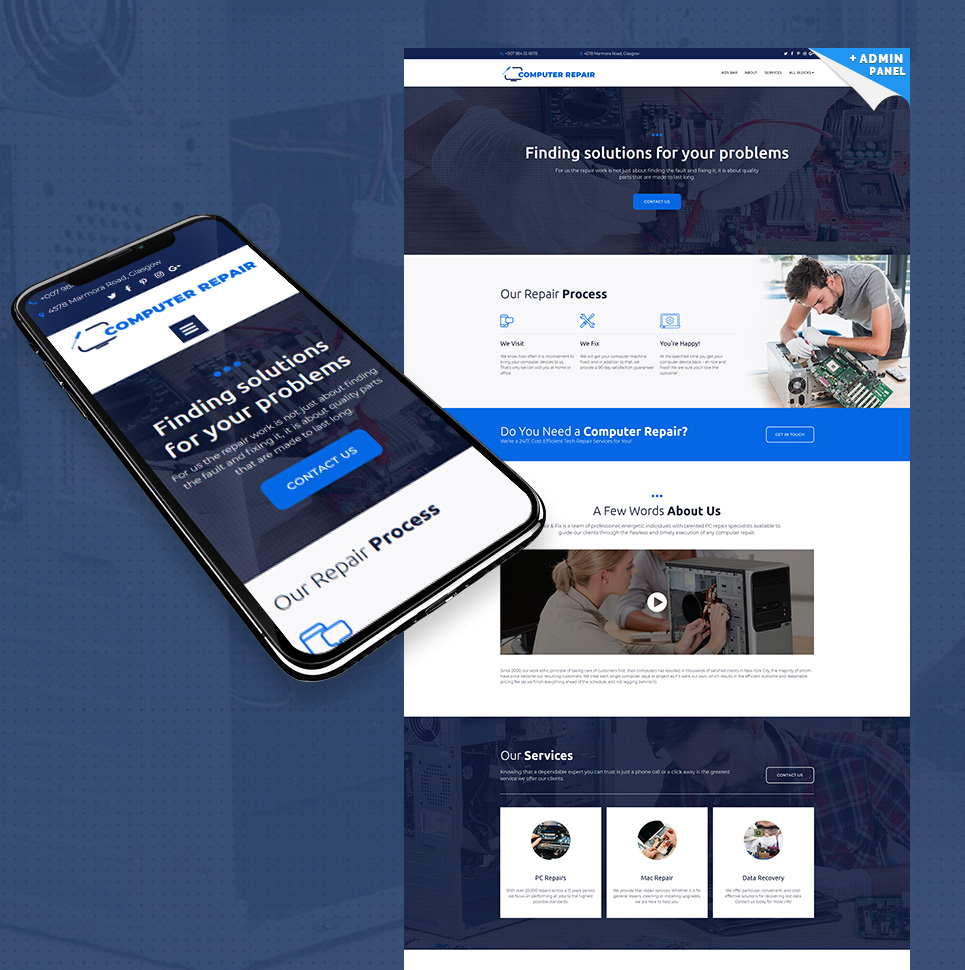 Лендинг шаблон для одностраничного сайта - Computer Repair - Computer Repair Landing Page Template, идеально подходит для сайтов в области Ремонт компьютеров.