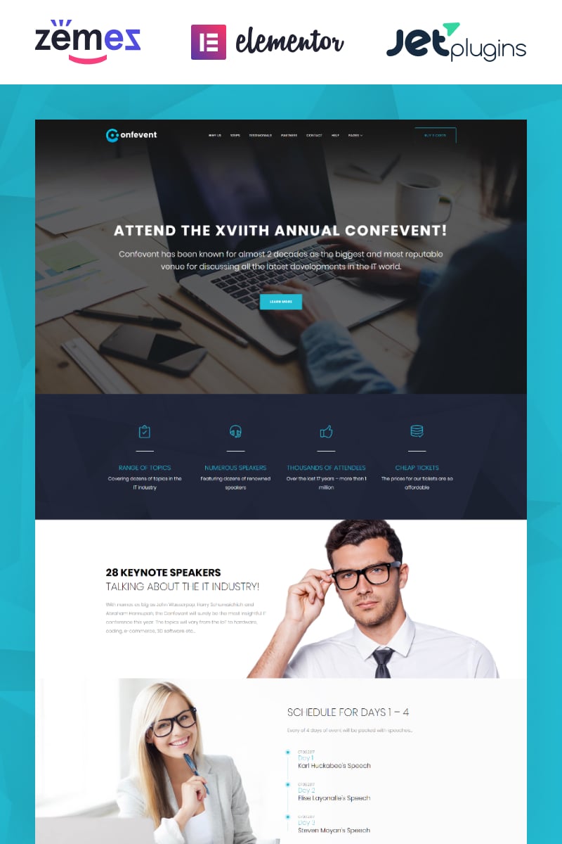 Confevent - подойдет для сайтов Организатор событий. WordPress профессиональный шаблон - Event Landing Page WordPress Theme.