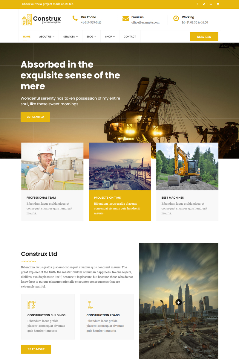 Joomla отличный шаблон - Construx - Construction & Building Business with Page Builder Joomla Template, идеально подойдет для сайтов в области Дизайн и Фотография.