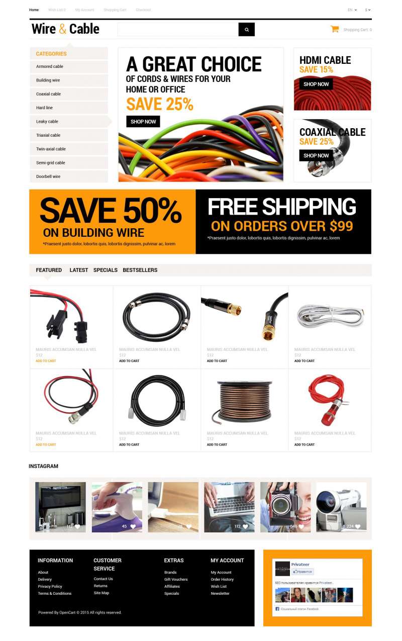OpenCart интернет-магазин - Electronics Store - Cords and Wires Store OpenCart Template, подходит для сайтов на тему Магазин электроники.