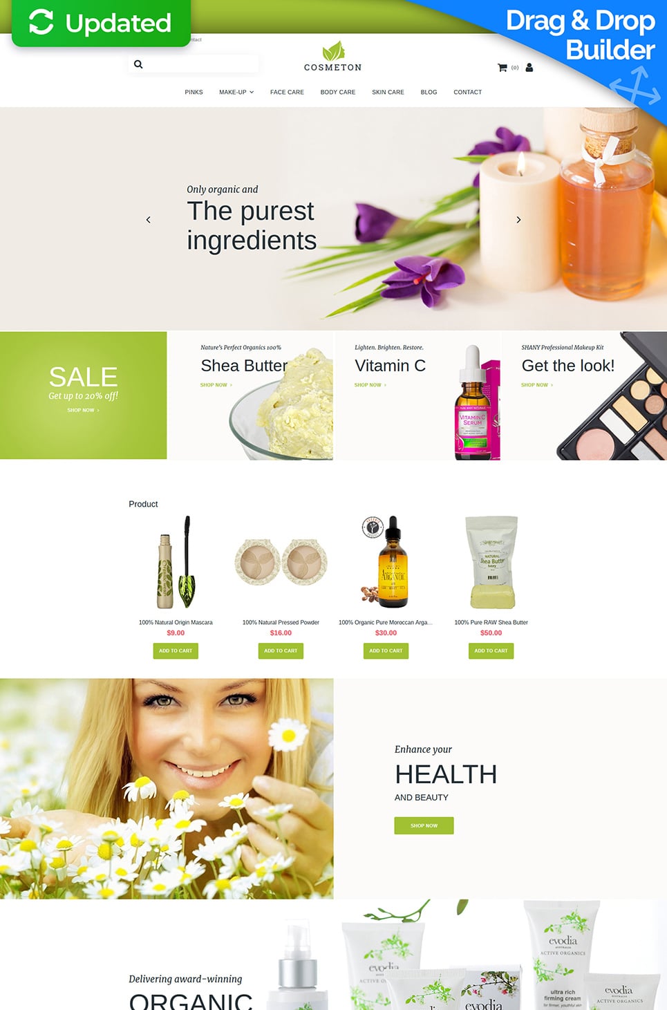 Cosmeton - хорошо подходит для сайтов Магазин косметики. MotoCMS Ecommerce интернет-магазин для сайта - Skin Care Responsive MotoCMS Ecommerce Template.