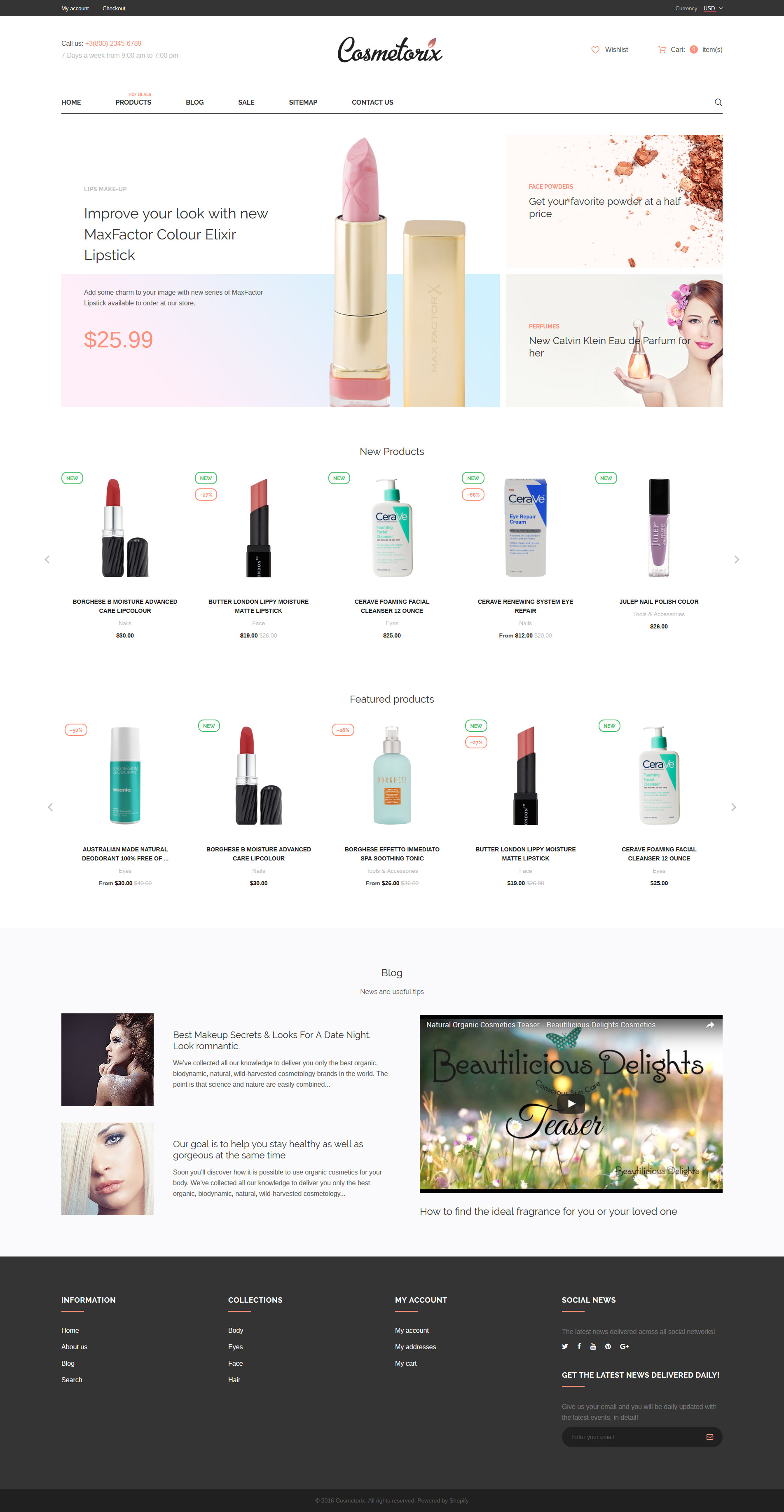 Shopify шаблон интернет-магазина - Cosmetics Store - Cosmetorix Shopify Theme, отлично подходит для сайтов в области Магазин косметики.