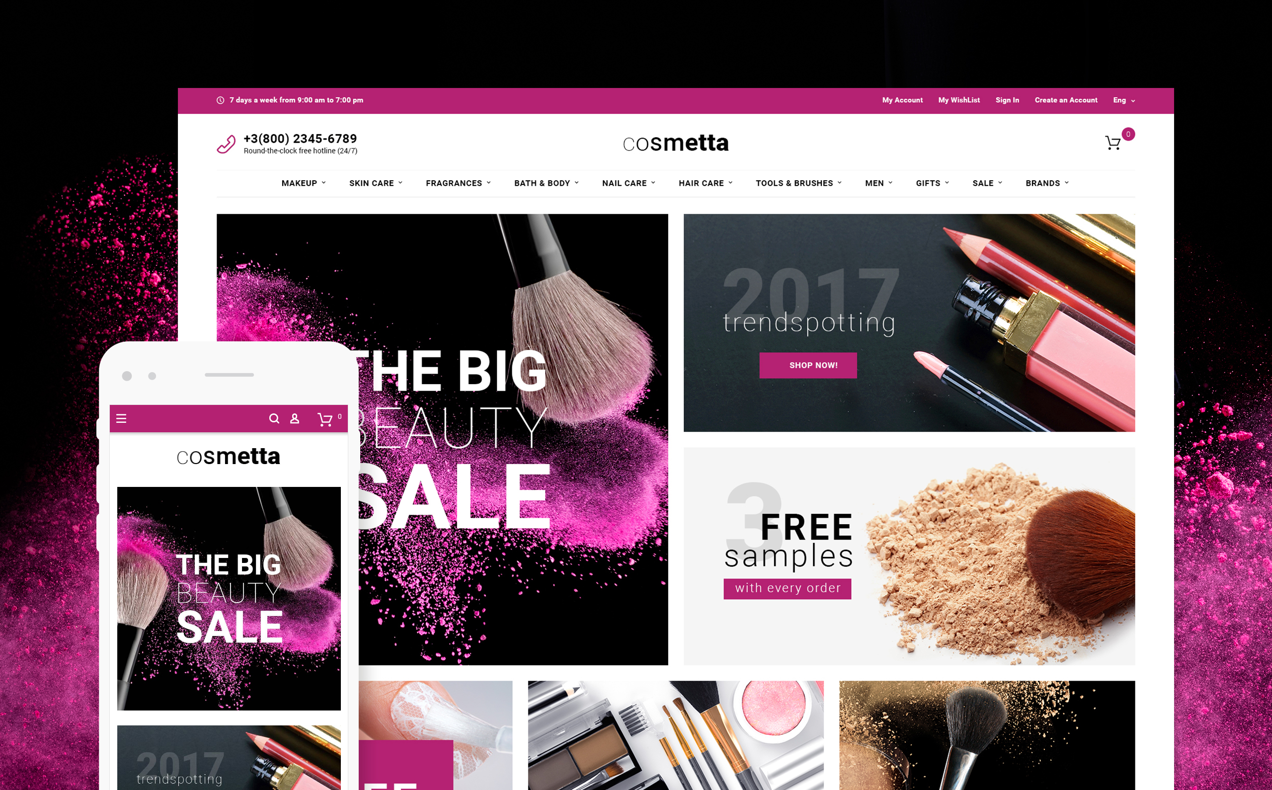 Magento продаваемый шаблон - Cosmetta - Cosmetics Store Magento Theme, подойдет для сайтов в области Салон красоты.