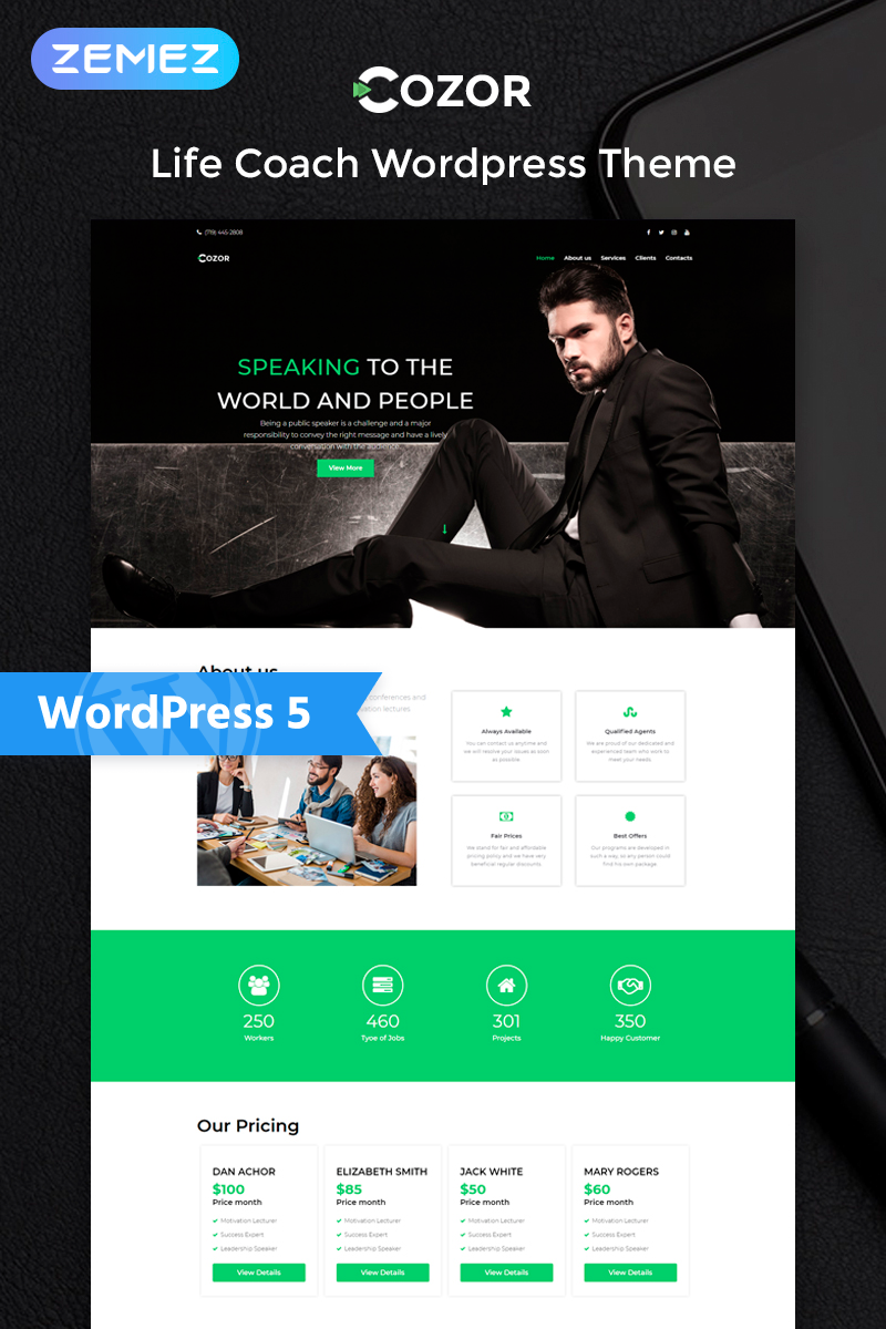 Cozor - отлично подходит для сайтов в области Личный консультант. WordPress приятный шаблон - Life Couch Multipurpose Animated WordPress Elementor Theme.