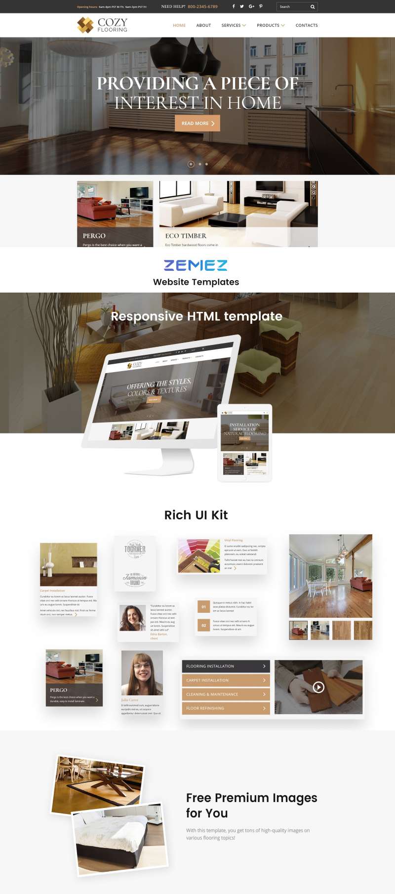 COZY - превосходно подходит для сайтов на тему Напольные покрытия. HTML5 универсальный шаблон - Flooring Materials Responsive Modern HTML Website Template.