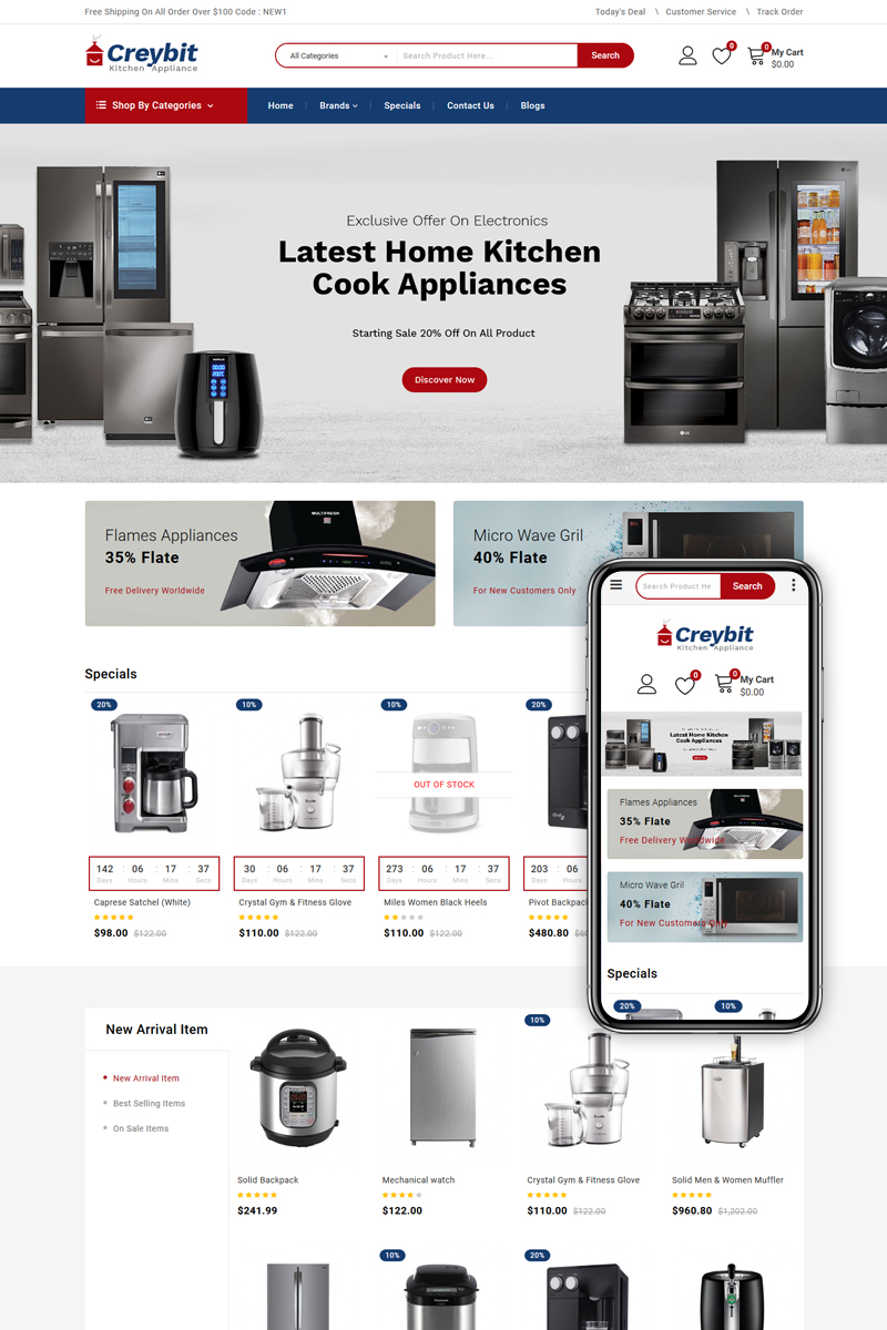 OpenCart шаблон интернет-магазина - Creybit - Multipurpose OpenCart Template, превосходно подойдет для сайтов в области Электроника.