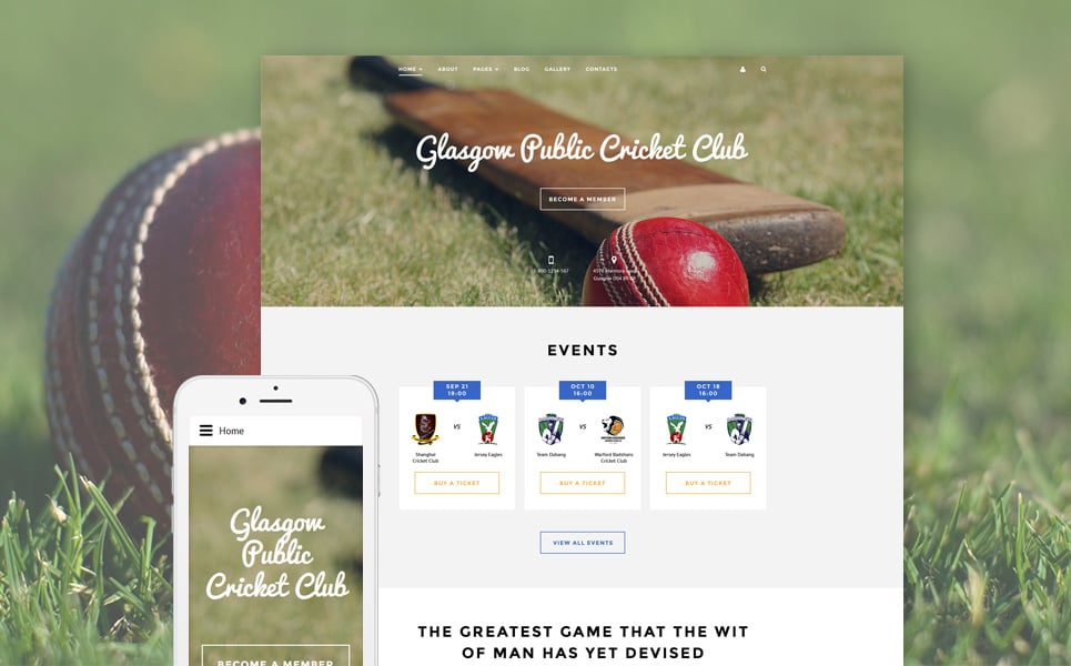 Joomla шаблон - Cricket - Cricket Club Joomla Template, хорошо подходит для сайтов в категории Крикет.