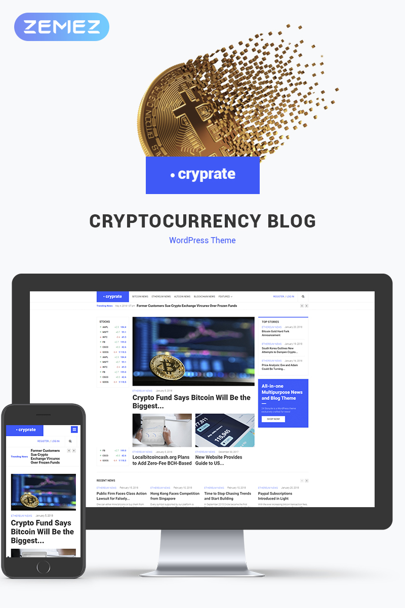 WordPress профессиональный шаблон - Cryprate - Cryptocurrency Blog WordPress Elementor Theme, подойдет для сайтов в области Финансы.