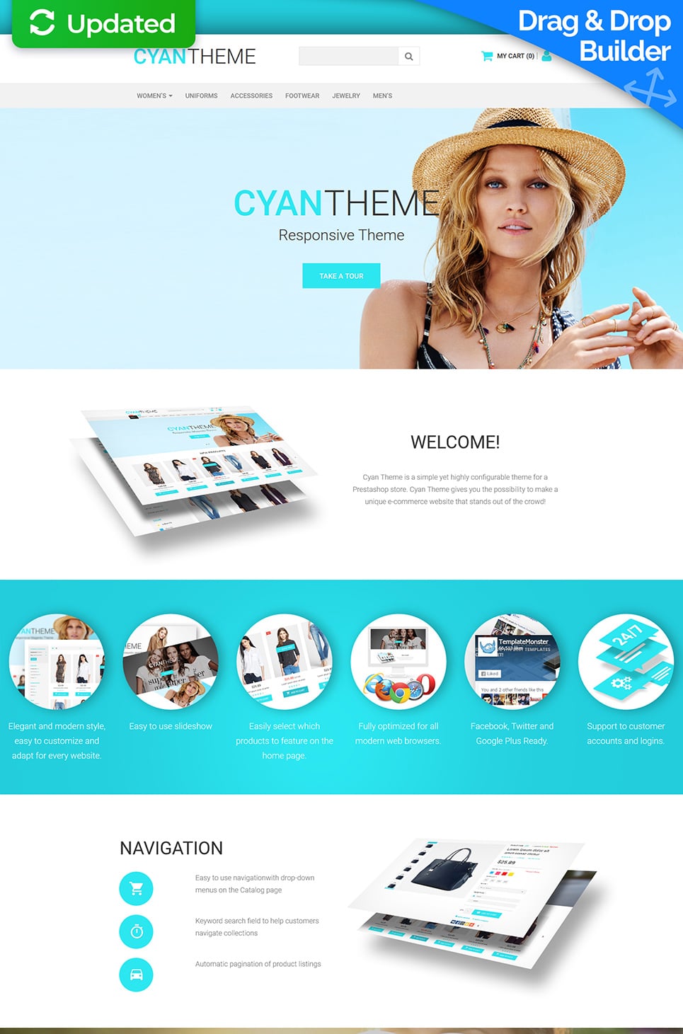 MotoCMS Ecommerce шаблон для сайта интернет-магазина - Cyan Theme - Clothing Store MotoCMS Ecommerce Template, специально для сайтов в сфере Модный магазин.