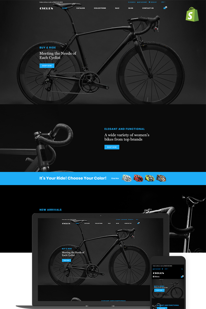 Shopify шаблон для сайта интернет-магазина - Cycles - Bikes Shop Shopify Theme, отлично подходит для сайтов в категории Велосипеды.