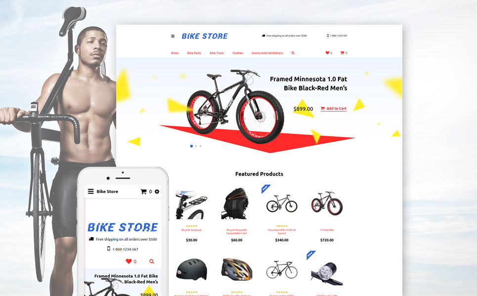 Cycling - отлично подойдет для сайтов в категории Велоспорт. OpenCart интернет-магазин для сайта - Cycling Responsive OpenCart Template.