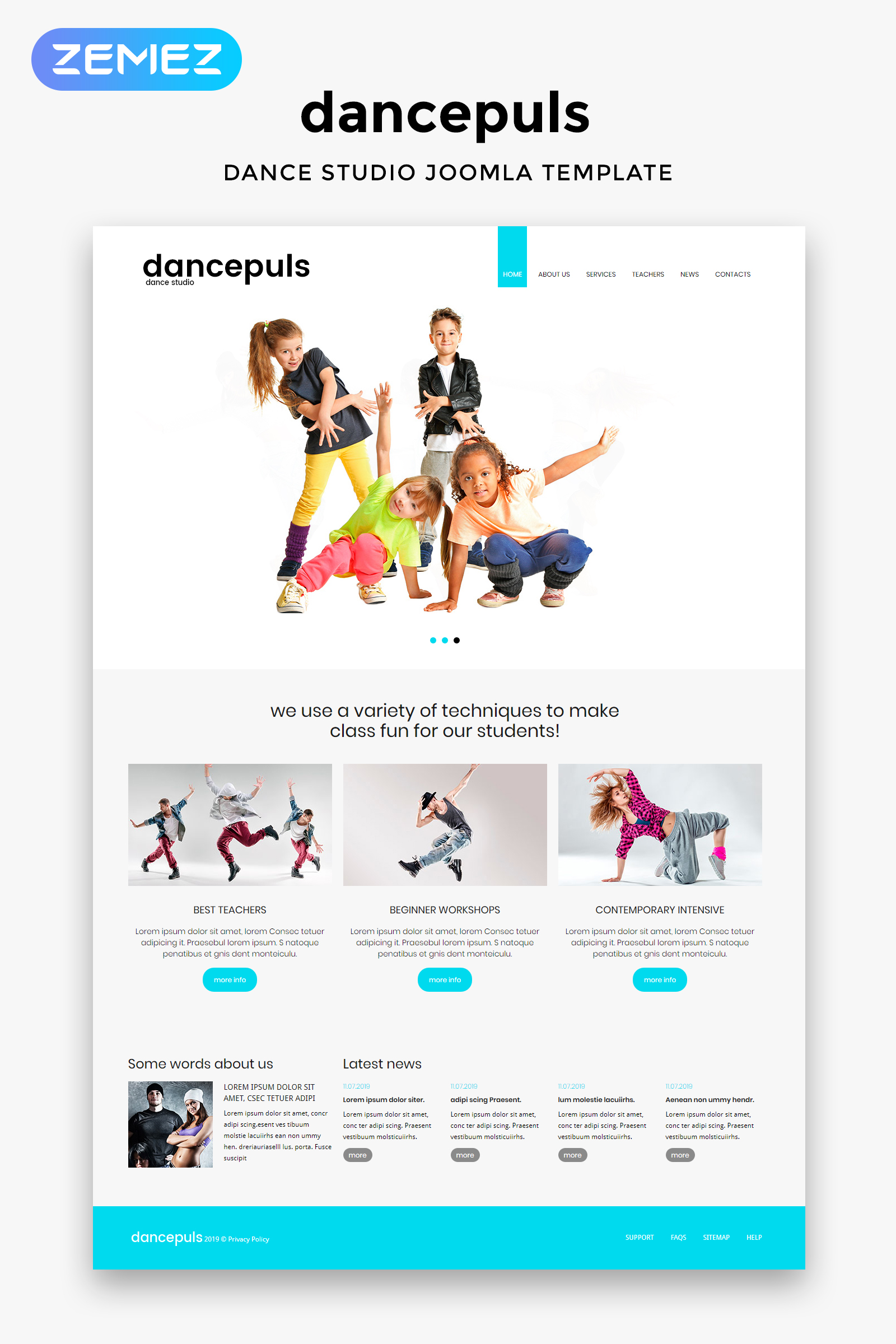 Joomla эффектный шаблон - Dancepuls - Dance Studio Responsive Clean Joomla Template, превосходно подходит для сайтов в сфере Танцевальная студия.