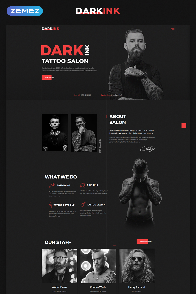 DarkInk - идеально подойдет для сайтов на тему Тату салон. HTML5 популярный шаблон - Tattoo Salon Multipage HTML5 Website Template.