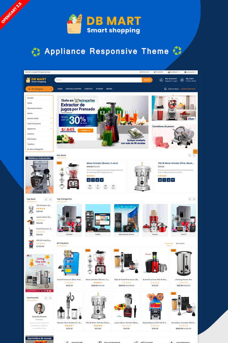 Db mart home applience шаблон opencart - Grocery Store - OpenCart шаблон для интернет-магазина