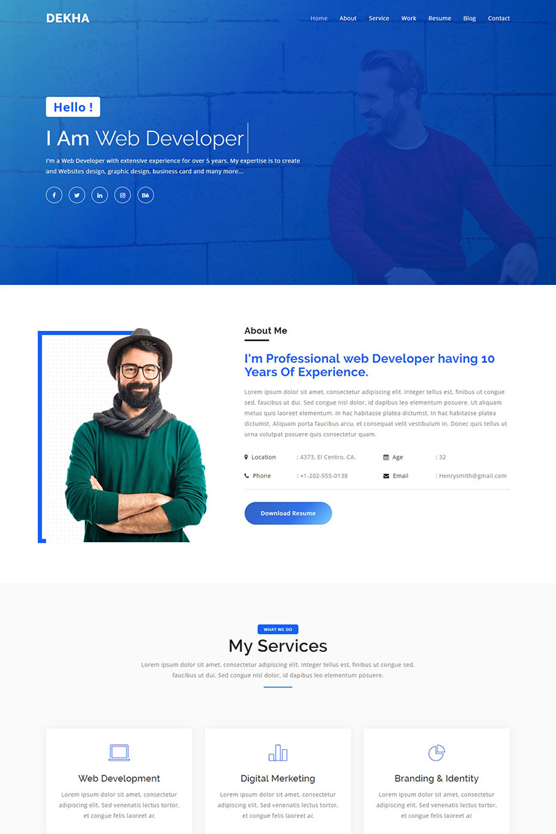 Креативный шаблон целевой страницы личного портфолио - Dekha - Лендинг шаблон для одностраничного сайта