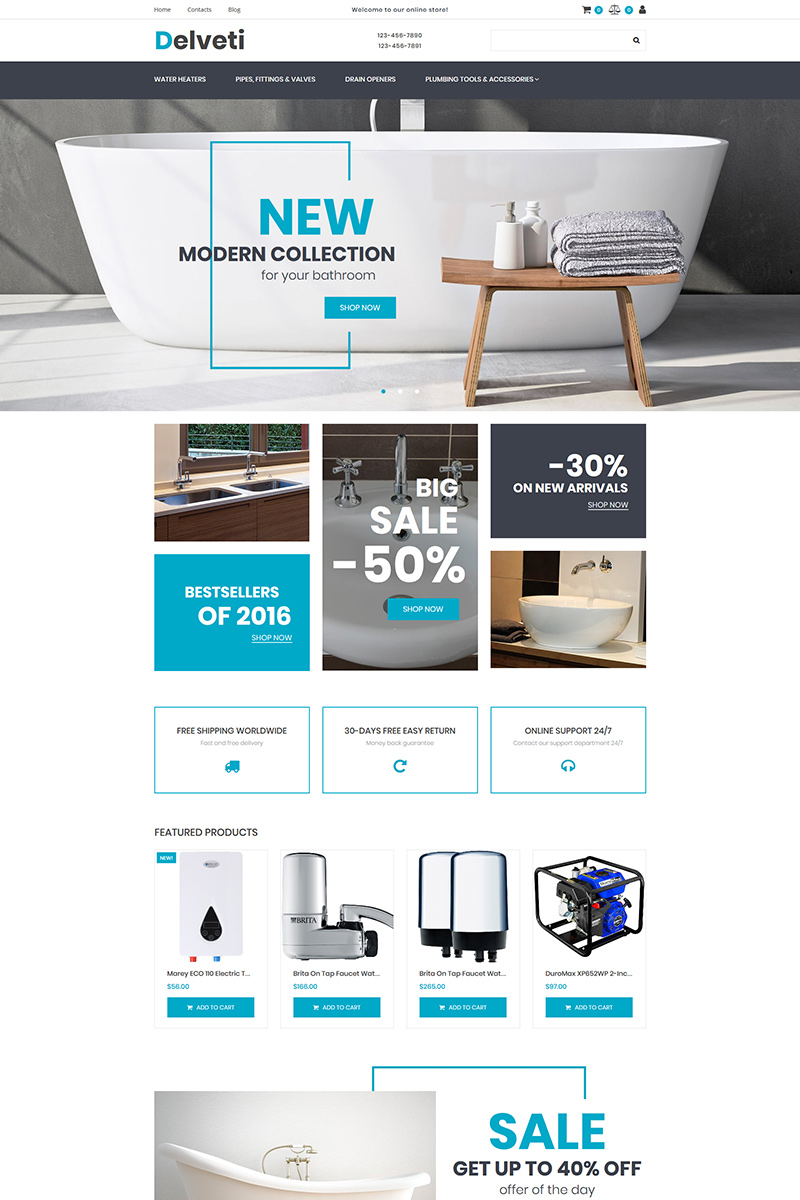 Delveti - превосходно подойдет для сайтов в области Сантехника. MotoCMS Ecommerce шаблон для интернет-магазина - Plumbing Supplies MotoCMS Ecommerce Template.
