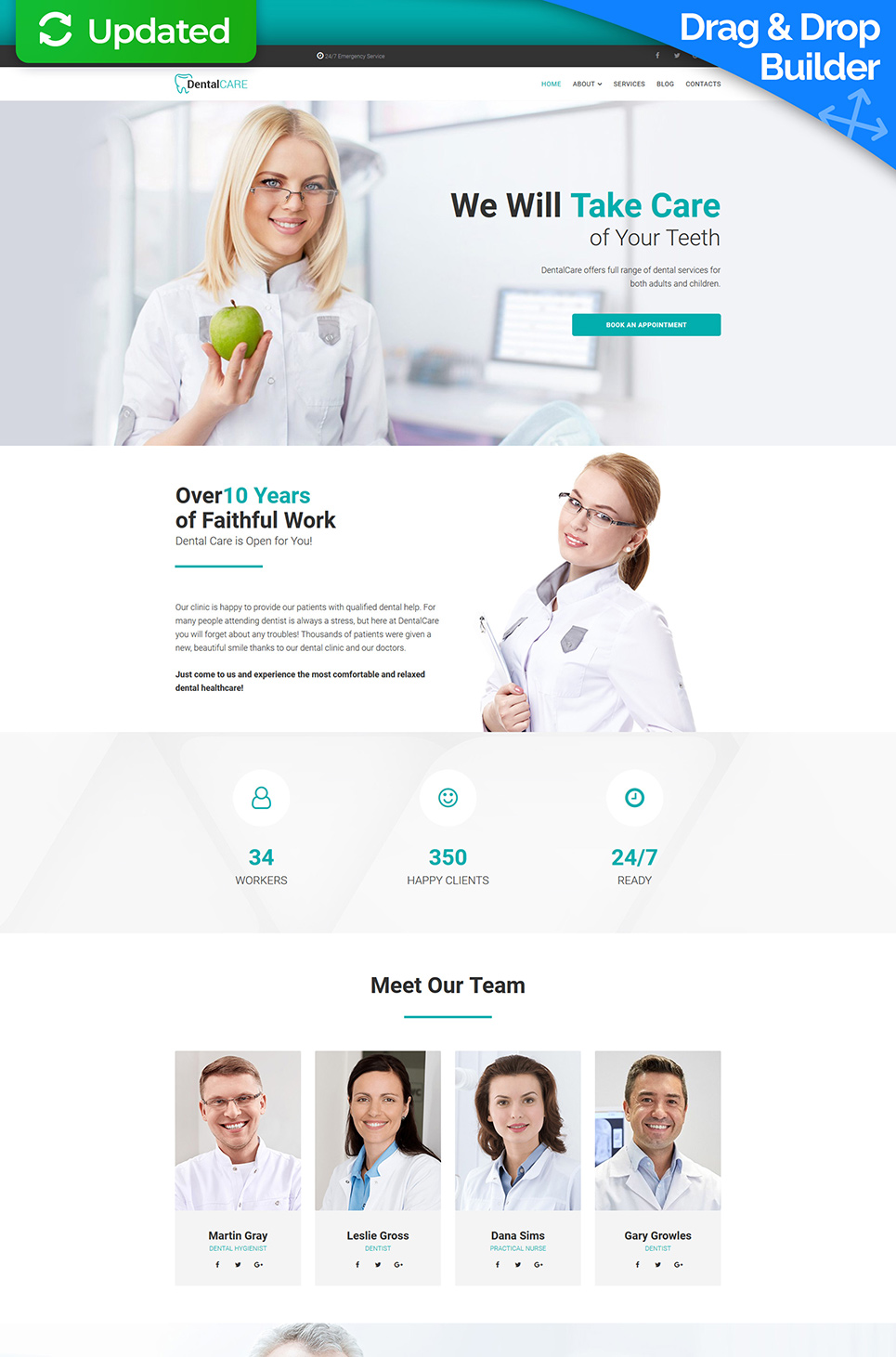 Moto CMS 3 продаваемый шаблон - DentalCare - Dental Clinic Moto CMS 3 Template, отлично подходит для сайтов в сфере Стоматология.