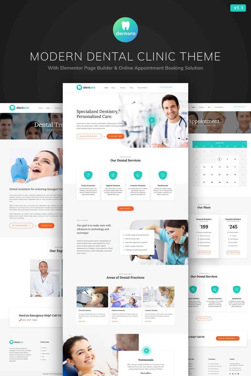 WordPress шаблон 2021 года - Dentora - Dental Clinic WordPress Elementor Theme, превосходно подходит для сайтов Стоматология.