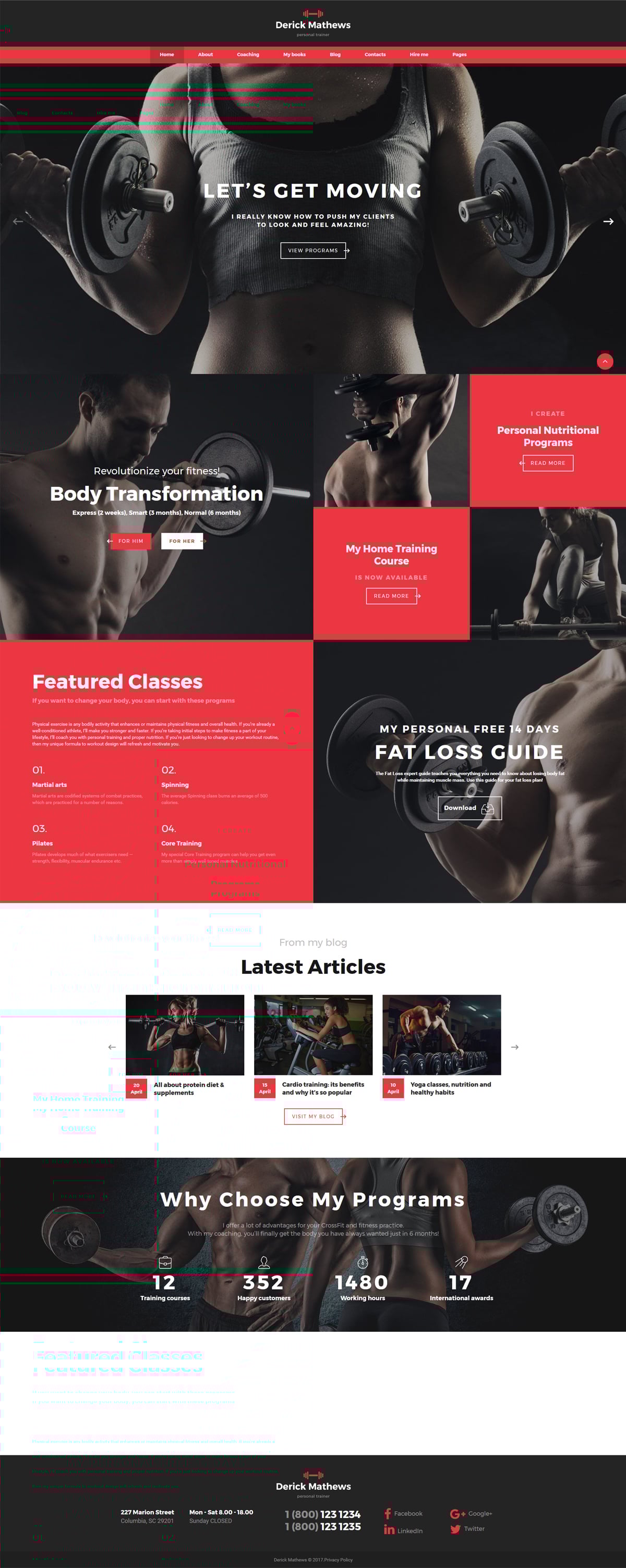 Derick Mathews - подойдет для сайтов Бодибилдинг. HTML5 профессиональный шаблон - Personal Trainer Multipage Website Template.