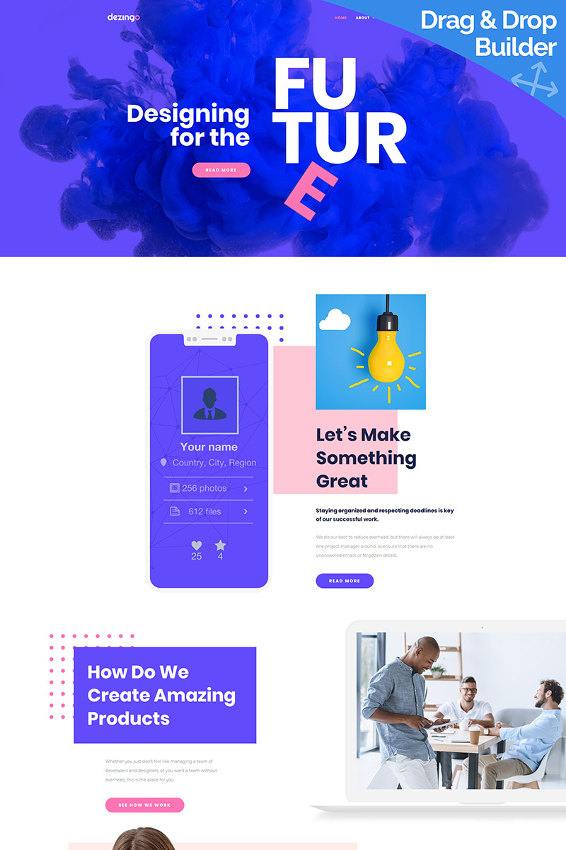 Moto CMS 3 новый шаблон - Dezingo - Creative Startup Moto CMS 3 Template, идеально подойдет для сайтов Дизайн.