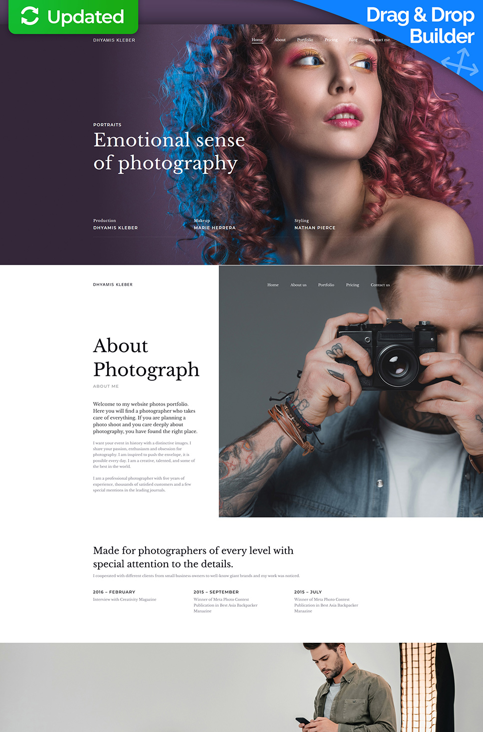 Moto CMS 3 функциональный шаблон - Dhyamis Kleber - Photographer Portfolio Premium Moto CMS 3 Template, отлично подойдет для сайтов в области Портфолио фотографа.