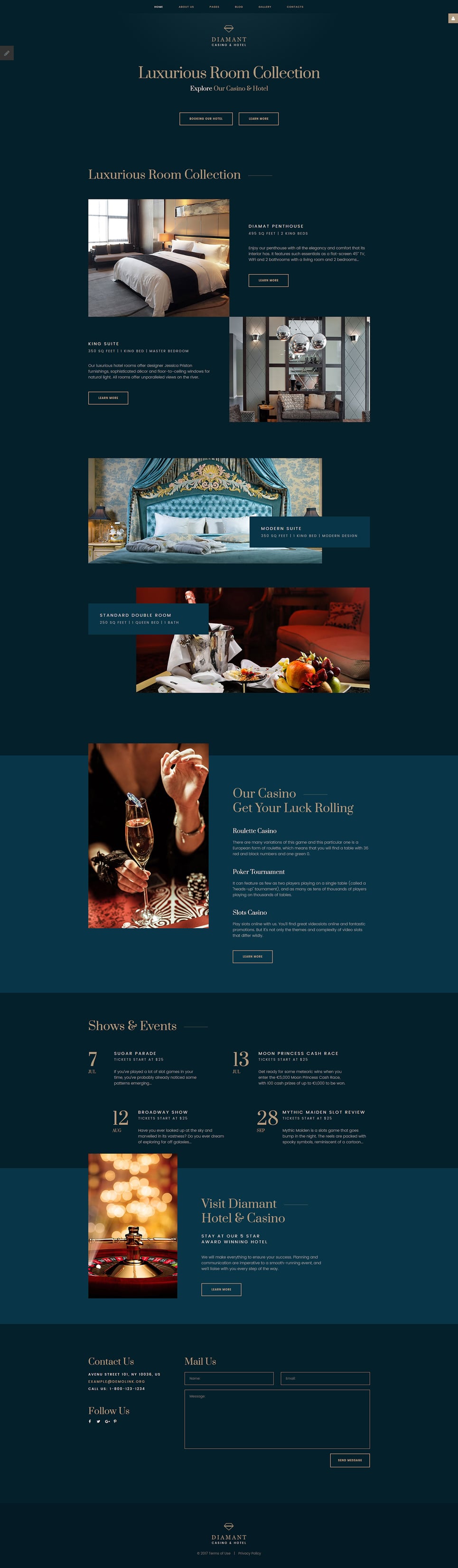 Joomla адаптивный шаблон - Diamant - Casino & Hotel Joomla Template, хорошо подойдет для сайтов в категории Отели.