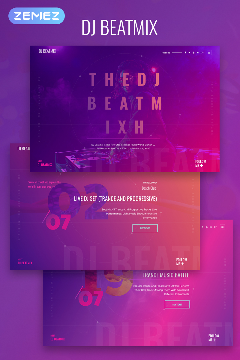 DJ Beatmix - хорошо подойдет для сайтов в сфере Диджей. WordPress популярный шаблон - Personal Page WordPress Elementor Theme.
