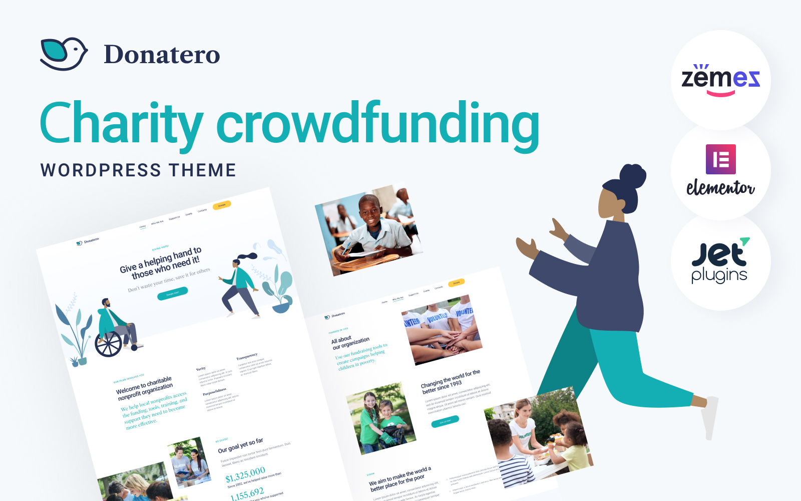 WordPress шаблон для сайта - Donatero - Charity Crowdfunding WordPress Theme, отлично подходит для сайтов в сфере Благотворительность.