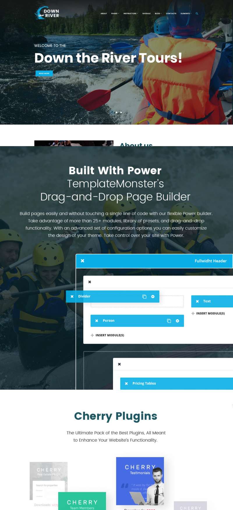 WordPress шаблон - Down River - Rafting & Kayaking WordPress Theme, хорошо подходит для сайтов на тему Рафтинг.