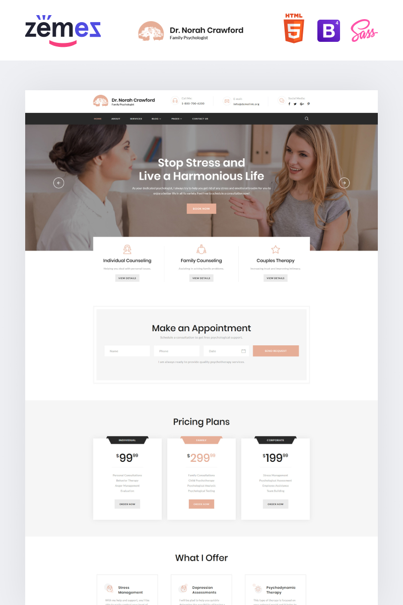 HTML5 шикарный шаблон - Dr. Norah Crawford - Psychologist Multipage Modern HTML Website Template, отлично подходит для сайтов в категории Психолог.