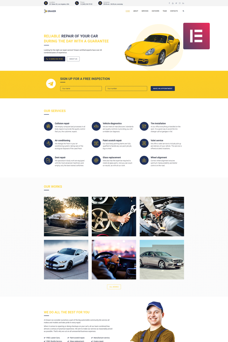 Draxer - превосходно подходит для сайтов на тему Ремонт авто. WordPress мультишаблон - Car Repair Multipurpose Minimal WordPress Elementor Theme.