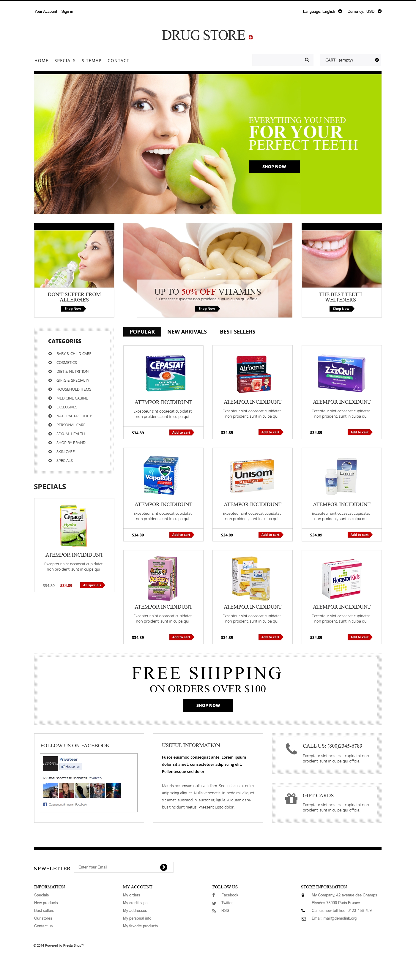 Drug Store - превосходно подходит для сайтов в области Аптека. PrestaShop шаблон для сайта интернет-магазина - Drug Store PrestaShop Theme.