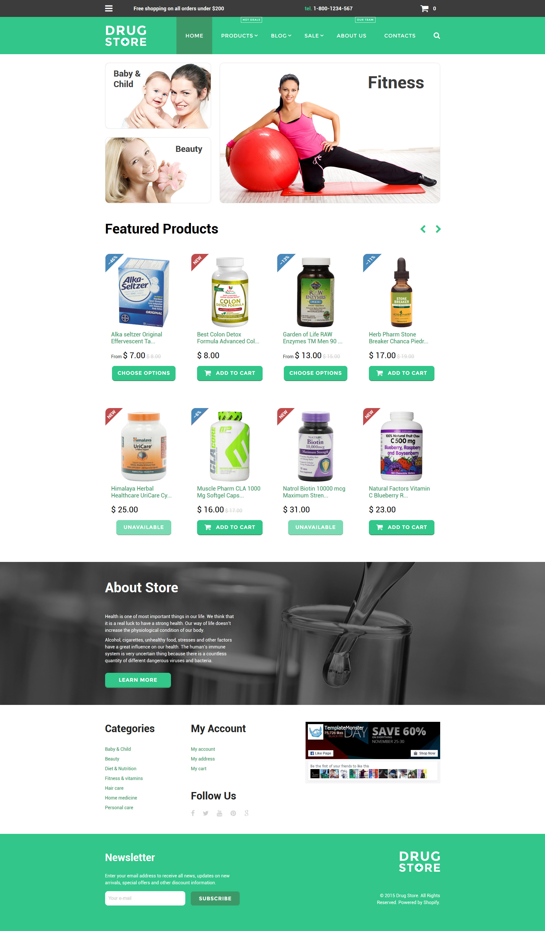 Drug Store - превосходно подойдет для сайтов Аптека. Shopify интернет-магазин - Drug store Shopify Theme.