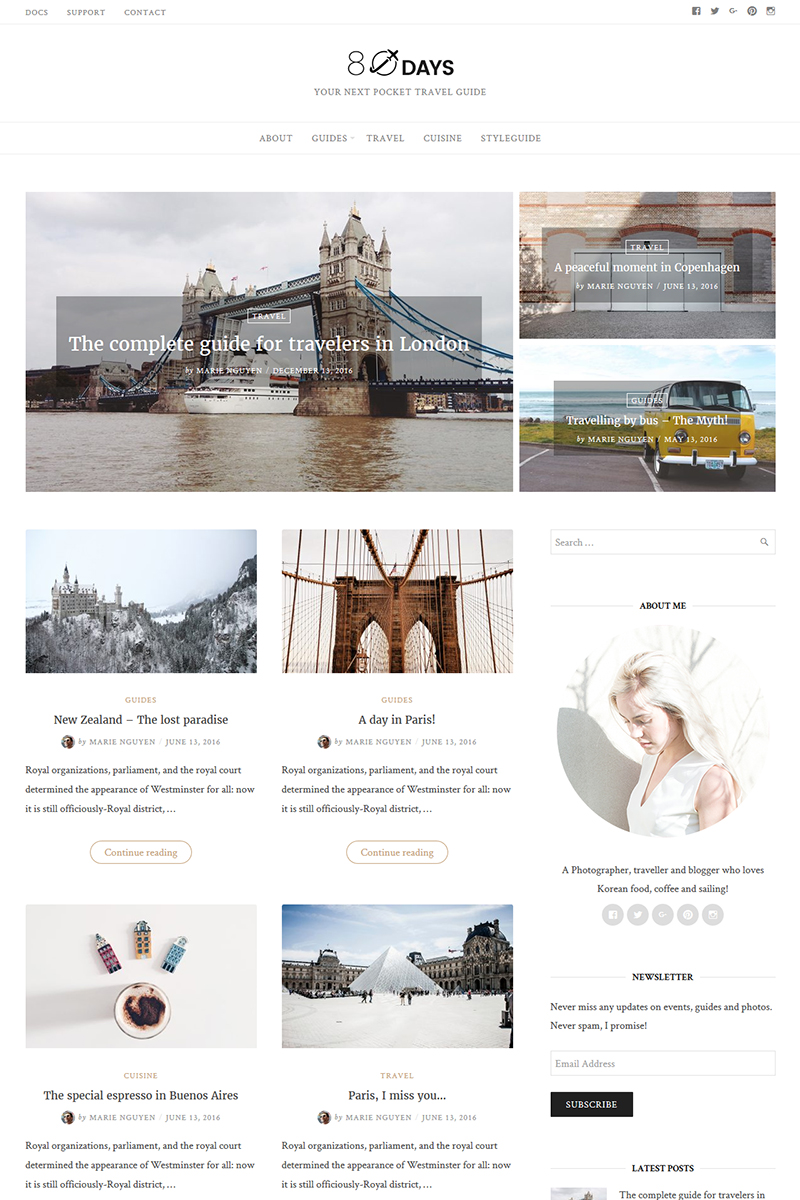 Travel blog wordpress тема - EightyDays - WordPress адаптивный шаблон