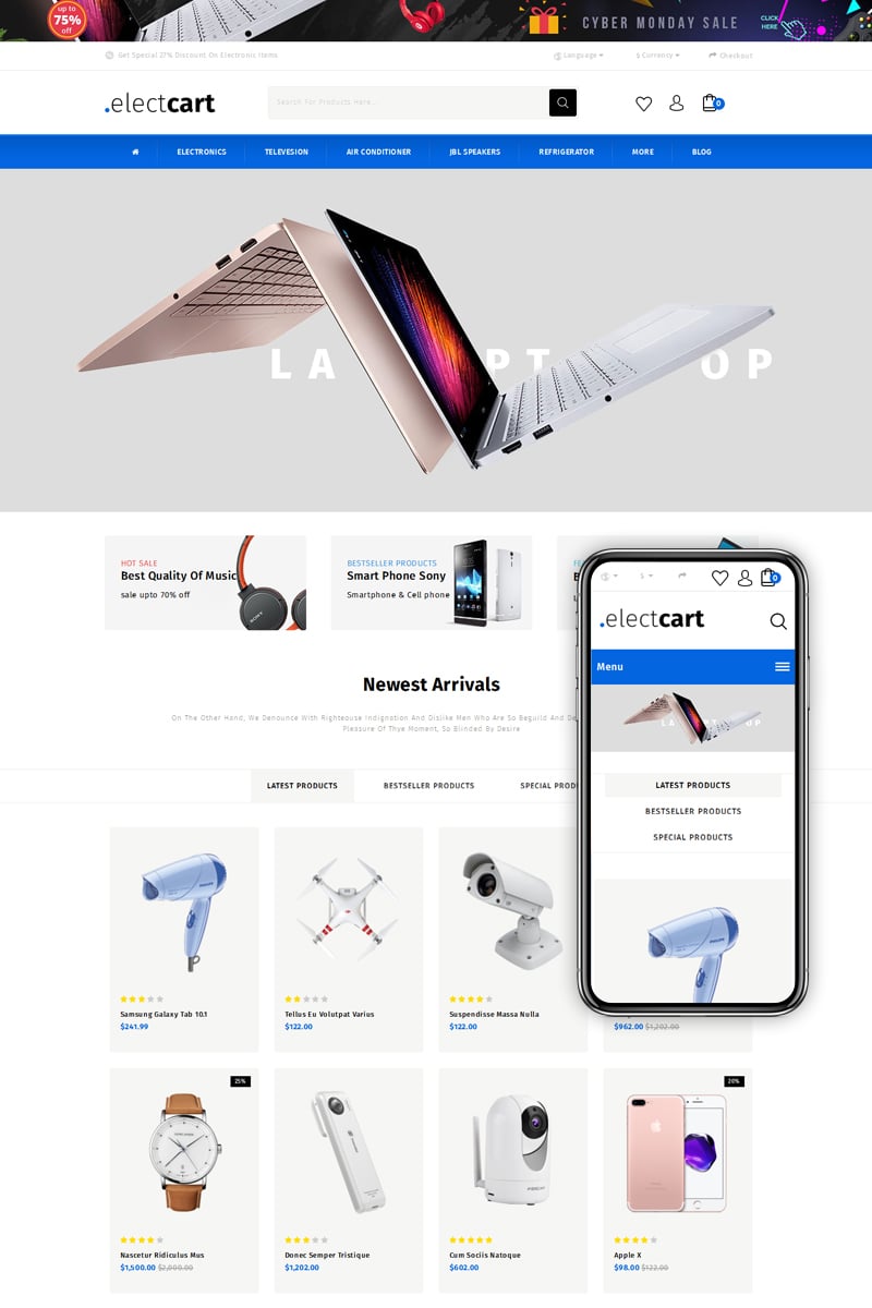ElectCart - специально для сайтов на тему Электроника. OpenCart интернет-магазин - Electronics Store OpenCart Template.