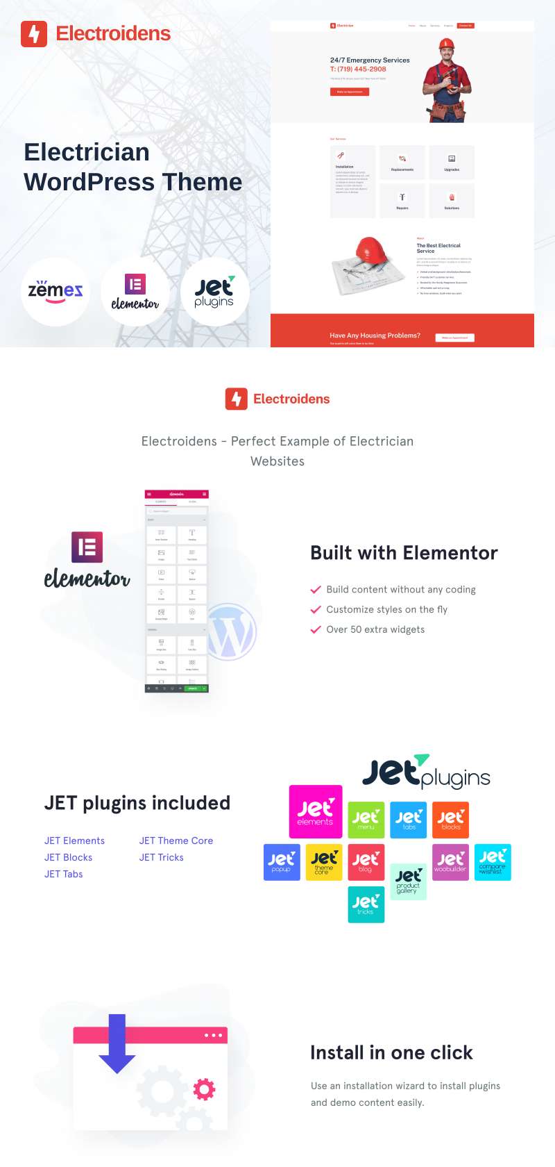 WordPress минималистичный шаблон - Electroidens - Electrician website with WordPress Elementor Theme, идеально подходит для сайтов в категории Инструменты и оборудование.
