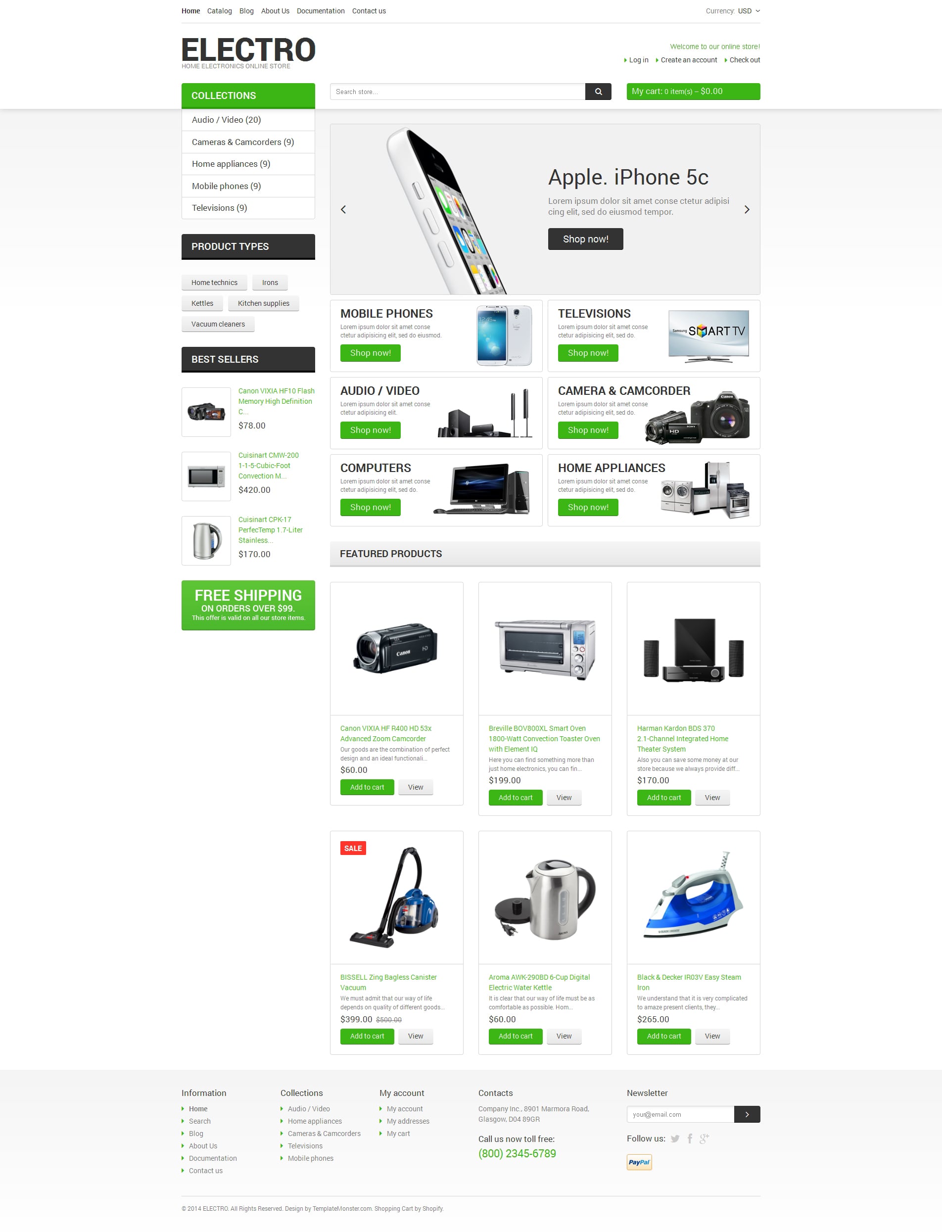 Shopify шаблон для сайта интернет-магазина - Electronics Store - Electronics Store Responsive Shopify Theme, хорошо подойдет для сайтов на тему Магазин электроники.