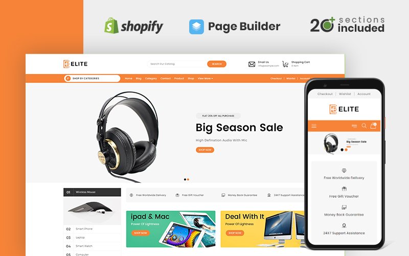 Mobile Store - отлично подходит для сайтов на тему Магазин мобильной связи. Shopify интернет-магазин для сайта - Elite Electronics Store Shopify Theme.